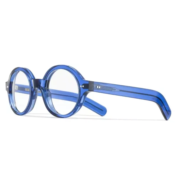 De excentriciteit van dit montuur is terug te vinden in het hele ontwerp, van de achtpuntige kompaspennen tot de perfect ronde glazen en opvallende acetaatkleuren.