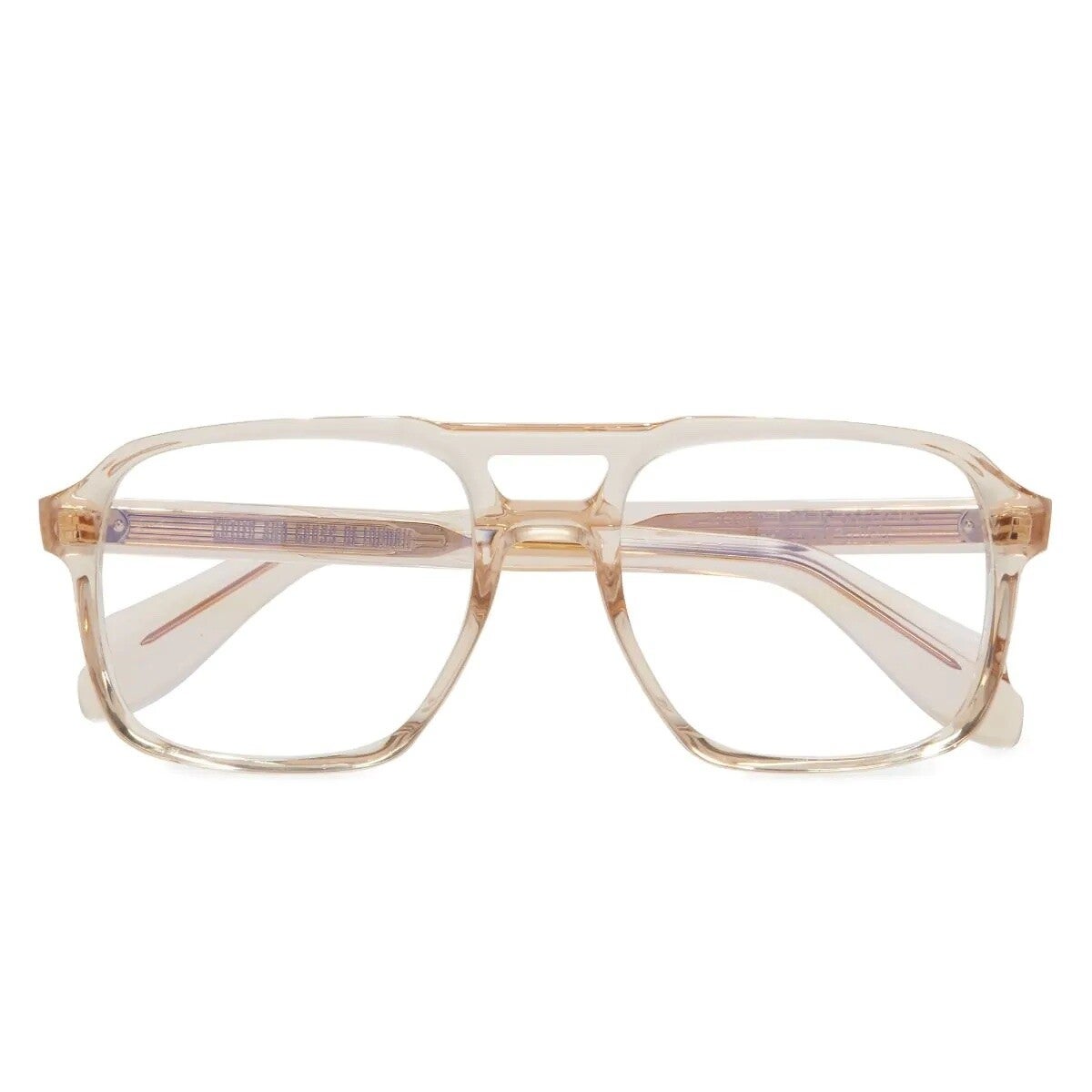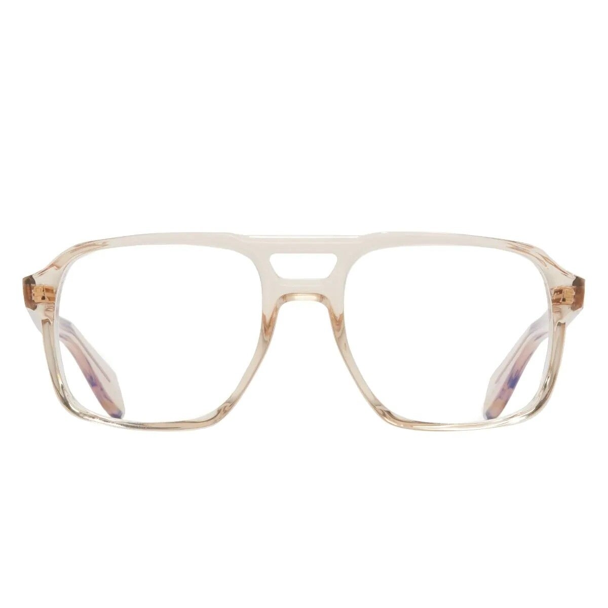Een archief Cutler and Gross montuur uit de jaren 70 legde de basis voor de 1394 optiek. Het is handgemaakt van acetaat tot een onderscheidend profiel met vierkante lenzen en een dubbele brug. Gepolijste Compass Star-pinnen detailleren de slapen.