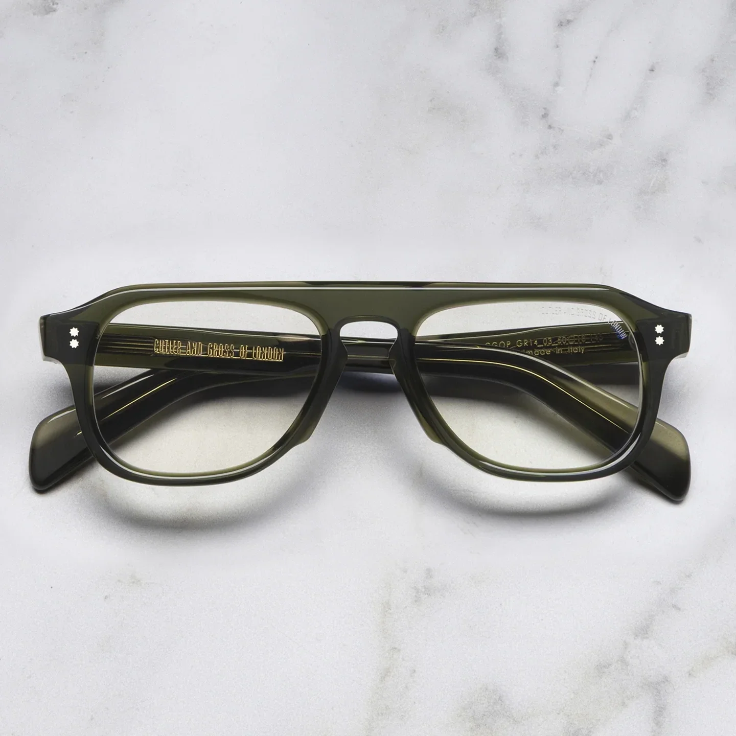 De Graham Cutler-collectie brengt gedurfde maar tijdloze stijlen samen in kleinere proporties, zoals de GR14. Handgemaakt in Italië van 8 mm acetaat. Het onderscheidende pilotensilhouet is voorzien van de kenmerkende 3D-frees- en afschuining voor lichtheid en comfort, de hele dag door.