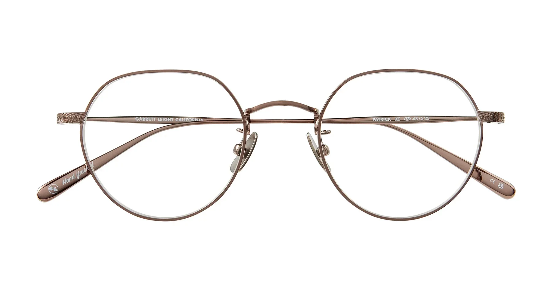 De Patrick is een strak, plat P3-montuur van volledig metaal, met een verfijnd muntrandje langs de oogdraad en een verfijnd nieuw filigraan detail op de uiteinden. De volledig metalen veren en geschroefde titanium neuspads bieden zowel duurzaamheid als comfort.
